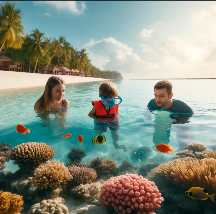 몰디브는 세계적인 휴양지로, 얕고 맑은 바다와 아름다운 산호초가 펼쳐진 곳입니다. 수심이 낮고 조류가 거의 없어 유아와 함께 스노클링 하기에 최적의 장소입니다. 몰디브의 많은 리조트는 가족 친화적인 서비스를 제공하며, 유아 전용 프로그램과 키즈 클럽이 마련되어 있습니다. 단, 장시간 비행으로 아이가 힘들어 할 수 있으니 초등학교 고학년이상 추천 합니다.